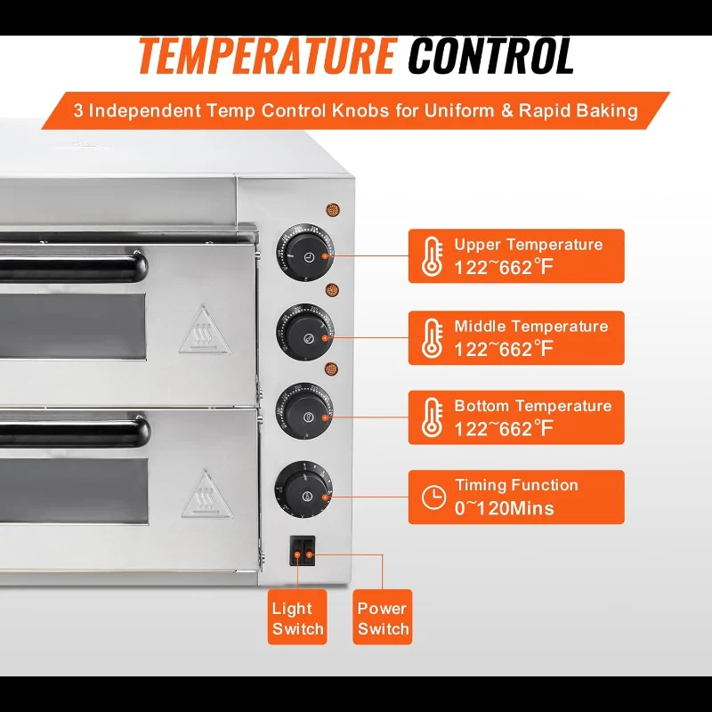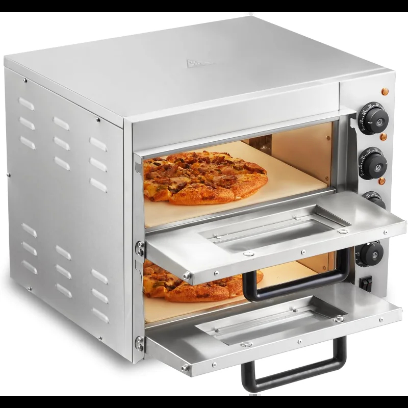 Commercial Pizza Oven Countertop 14"e; Double Deck Layer 110V 1800W Stainless Steel