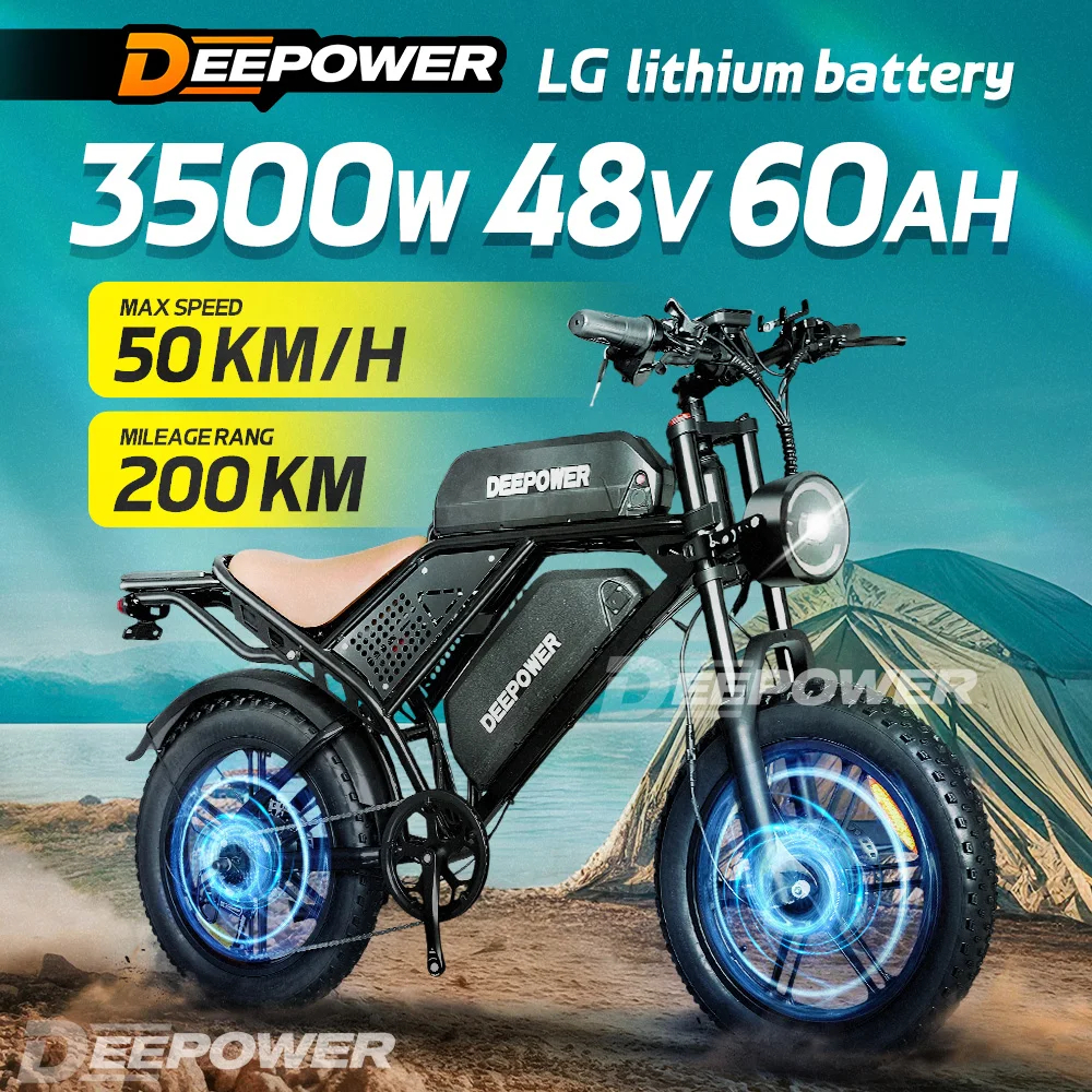 DEEPOWER S8 Electric Bicycle 1500W/2000W Dual Motor Electric Bike 60Ah fat tire