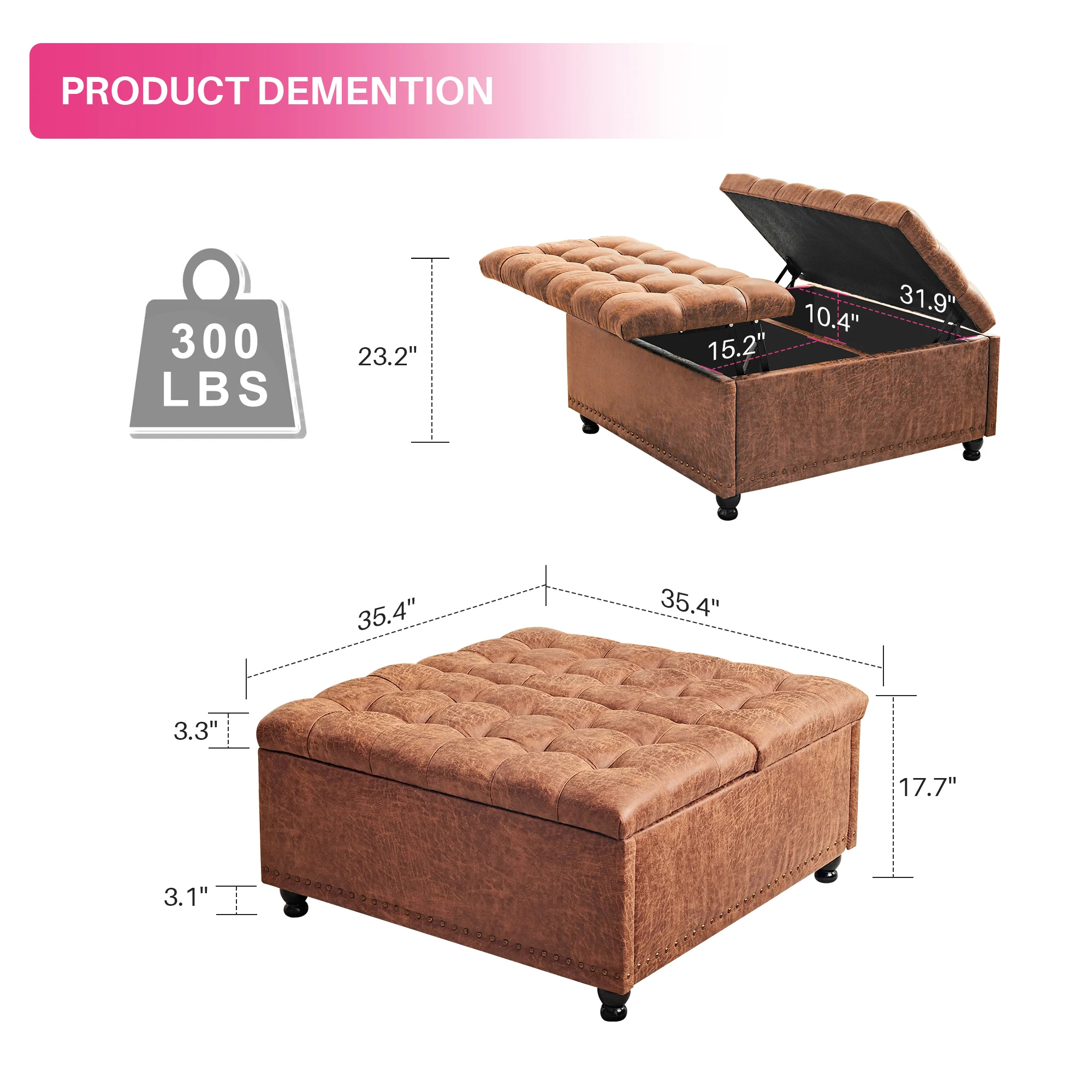 REDLIFE 35"e; Large Square Storage Ottoman Bench